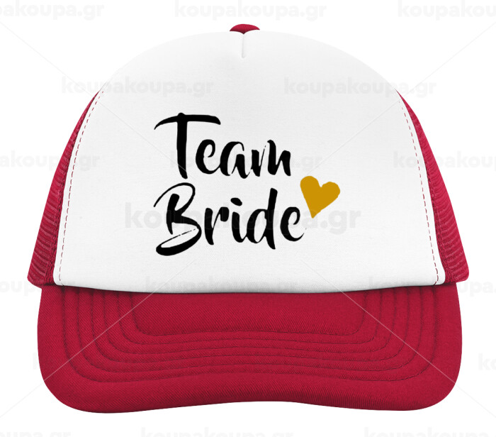 Team Bride, Adult Soft Trucker Hat with Red/White Mesh (POLYESTER, ADULT, UNISEX, ONE SIZE)