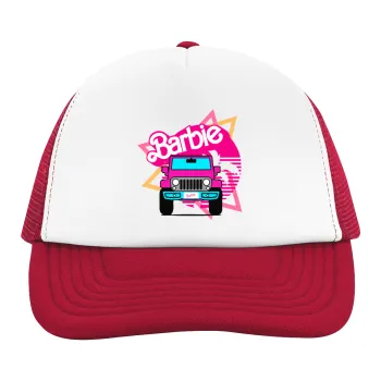 Barbie car, Adult Soft Trucker Hat with Red/White Mesh (POLYESTER, ADULT, UNISEX, ONE SIZE)