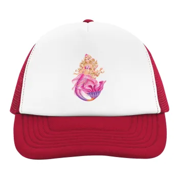 Barbie mermaid blue, Adult Soft Trucker Hat with Red/White Mesh (POLYESTER, ADULT, UNISEX, ONE SIZE)