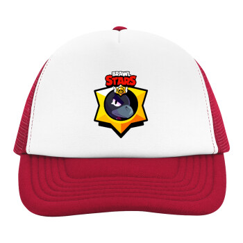 Brawl Stars Crow, Adult Soft Trucker Hat with Red/White Mesh (POLYESTER, ADULT, UNISEX, ONE SIZE)