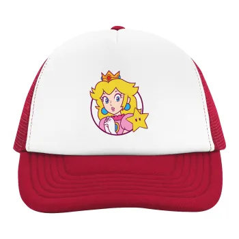 Princess Peach, Adult Soft Trucker Hat with Red/White Mesh (POLYESTER, ADULT, UNISEX, ONE SIZE)