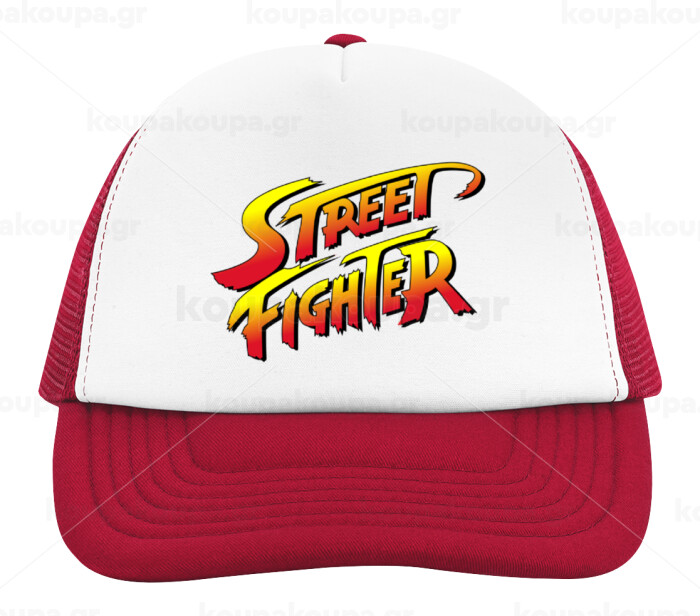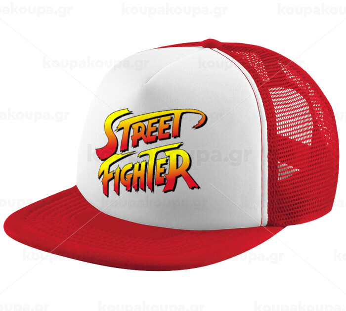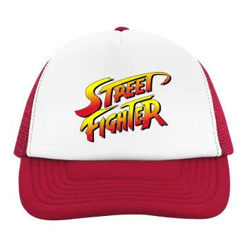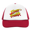 Street fighter, Adult Soft Trucker Hat with Red/White Mesh (POLYESTER, ADULT, UNISEX, ONE SIZE)