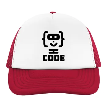 Code Heroes symbol, Adult Soft Trucker Hat with Red/White Mesh (POLYESTER, ADULT, UNISEX, ONE SIZE)