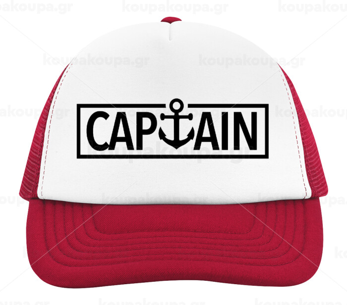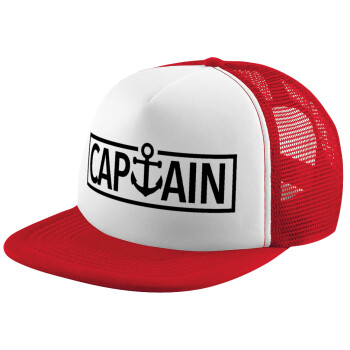 CAPTAIN, Adult Soft Trucker Hat with Red/White Mesh (POLYESTER, ADULT, UNISEX, ONE SIZE)