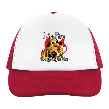 It's Fine I'm Fine Everything Is Fine, Adult Soft Trucker Hat with Red/White Mesh (POLYESTER, ADULT, UNISEX, ONE SIZE)