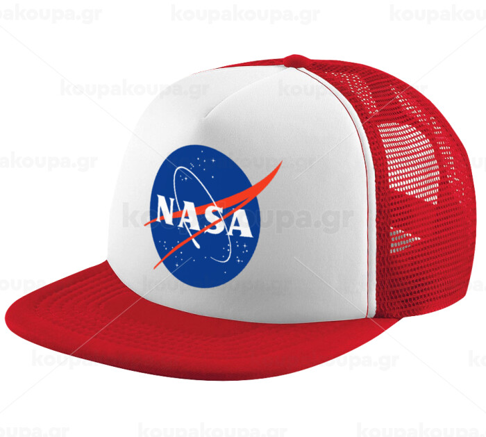 Nasa, Adult Soft Trucker Hat with Red/White Mesh (POLYESTER, ADULT, UNISEX, ONE SIZE)