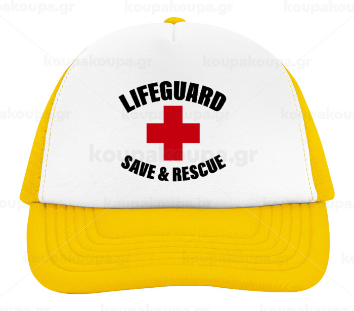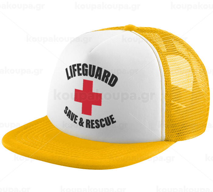 Lifeguard Save & Rescue, Adult Soft Trucker Hat with Yellow/White Mesh (POLYESTER, ADULT, UNISEX, ONE SIZE)