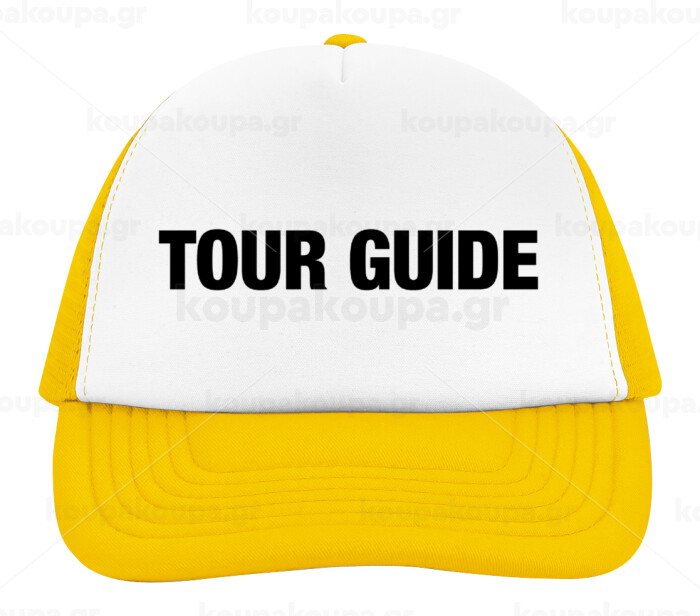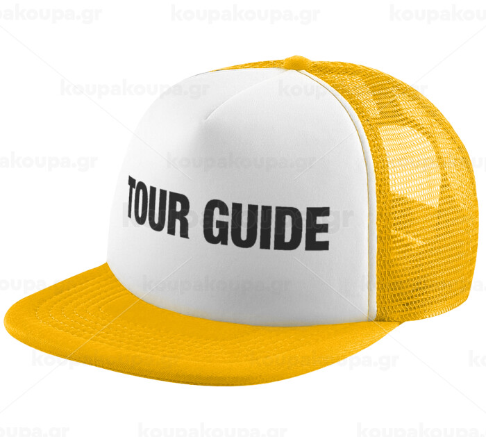 Tour Guide, Adult Soft Trucker Hat with Yellow/White Mesh (POLYESTER, ADULT, UNISEX, ONE SIZE)