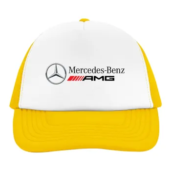 AMG Mercedes, Adult Soft Trucker Hat with Yellow/White Mesh (POLYESTER, ADULT, UNISEX, ONE SIZE)