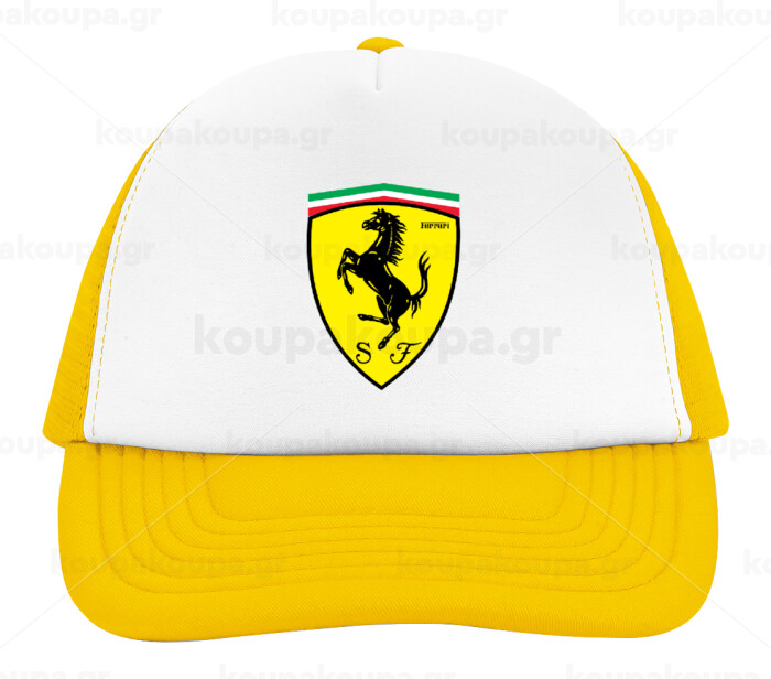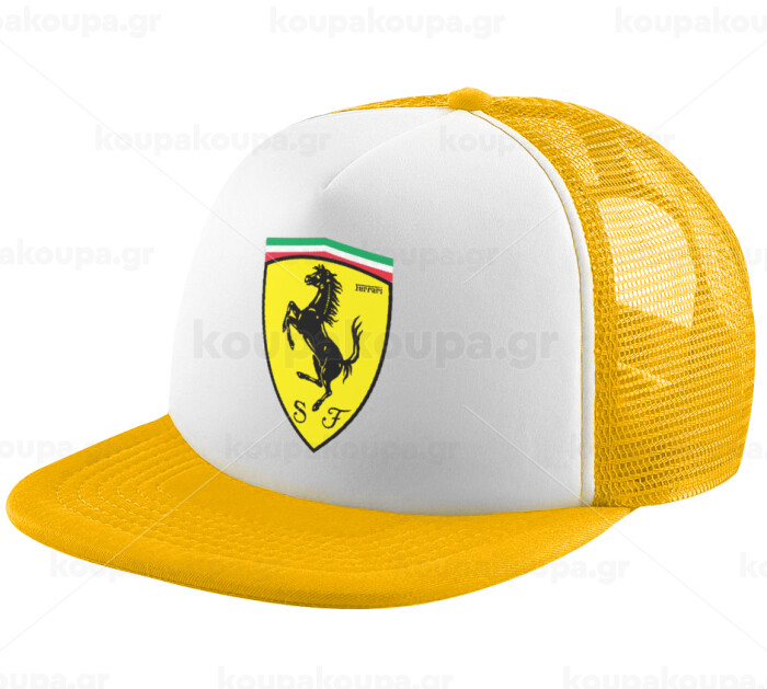 Ferrari, Adult Soft Trucker Hat with Yellow/White Mesh (POLYESTER, ADULT, UNISEX, ONE SIZE)