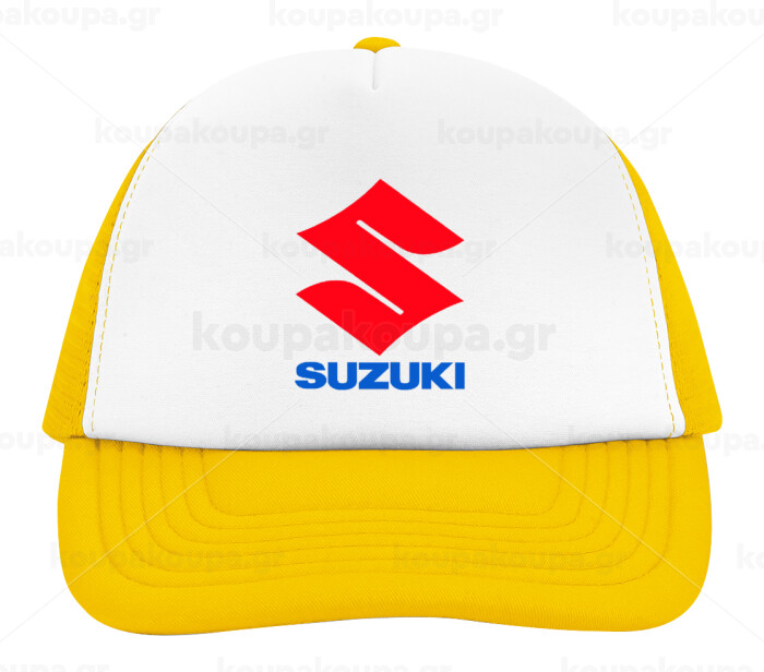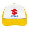 SUZUKI, Adult Soft Trucker Hat with Yellow/White Mesh (POLYESTER, ADULT, UNISEX, ONE SIZE)