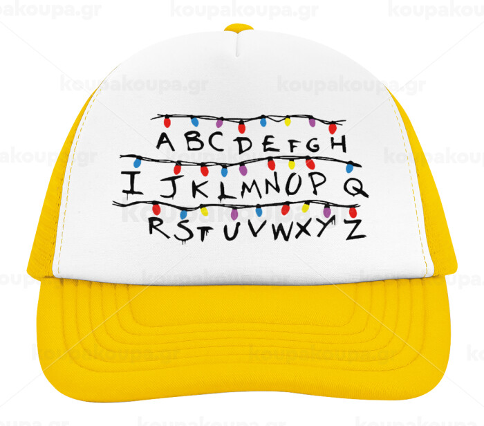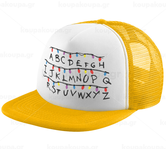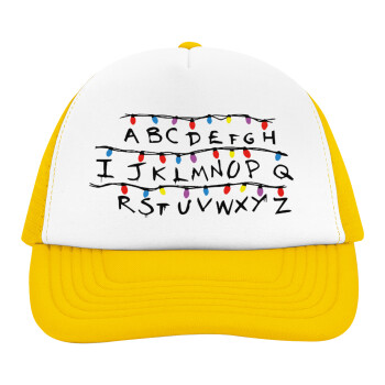 Stranger Things ABC, Adult Soft Trucker Hat with Yellow/White Mesh (POLYESTER, ADULT, UNISEX, ONE SIZE)