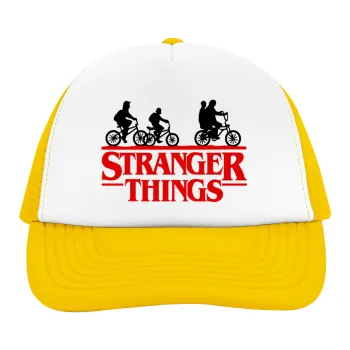 Stranger Things red, Adult Soft Trucker Hat with Yellow/White Mesh (POLYESTER, ADULT, UNISEX, ONE SIZE)