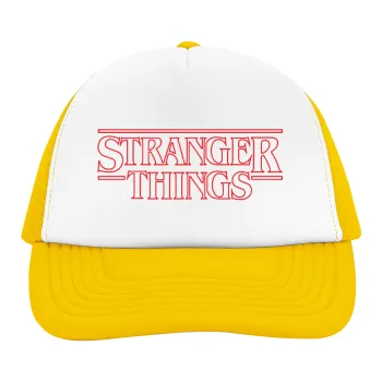 Stranger Things Logo, Adult Soft Trucker Hat with Yellow/White Mesh (POLYESTER, ADULT, UNISEX, ONE SIZE)