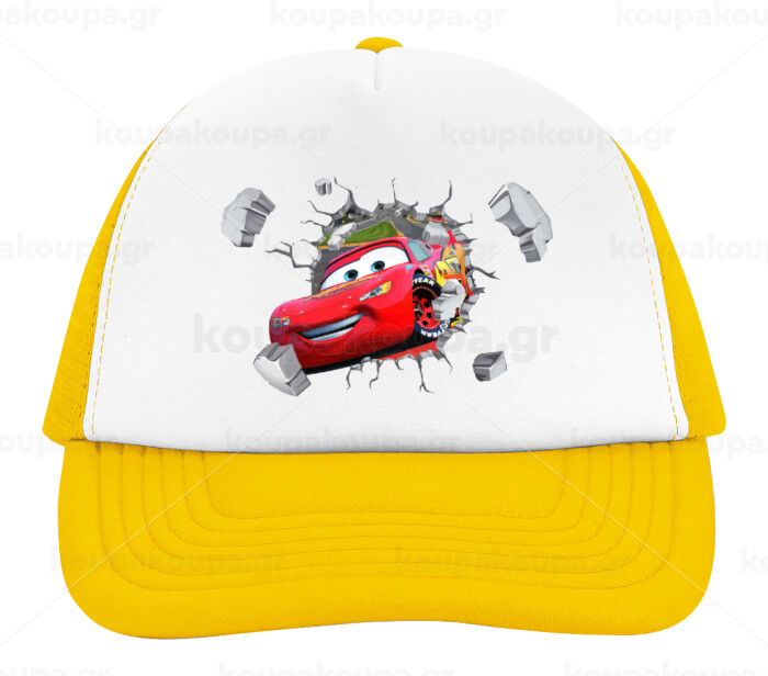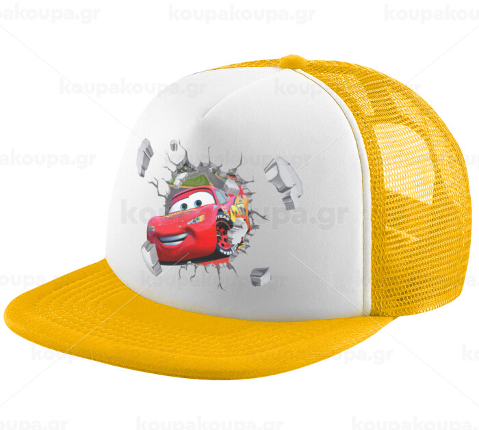 Brick McQueen, Adult Soft Trucker Hat with Yellow/White Mesh (POLYESTER, ADULT, UNISEX, ONE SIZE)