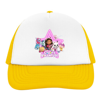 Gabby Dollhouse, Adult Soft Trucker Hat with Yellow/White Mesh (POLYESTER, ADULT, UNISEX, ONE SIZE)