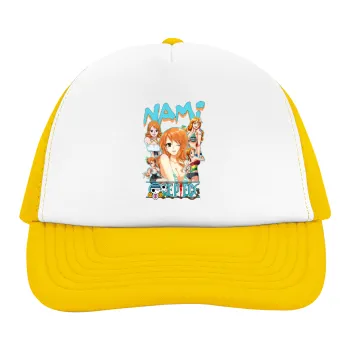 Nami One Piece, Adult Soft Trucker Hat with Yellow/White Mesh (POLYESTER, ADULT, UNISEX, ONE SIZE)