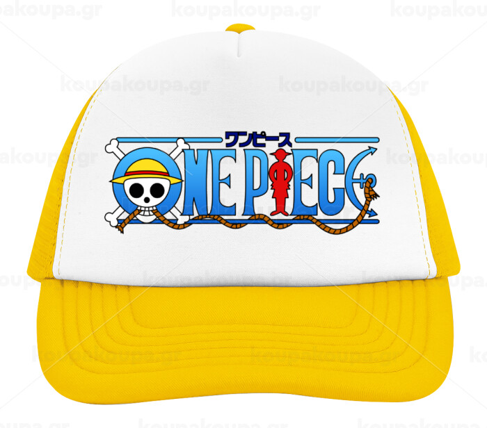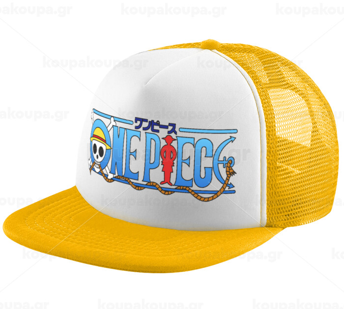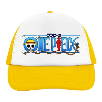 Onepiece logo, Adult Soft Trucker Hat with Yellow/White Mesh (POLYESTER, ADULT, UNISEX, ONE SIZE)