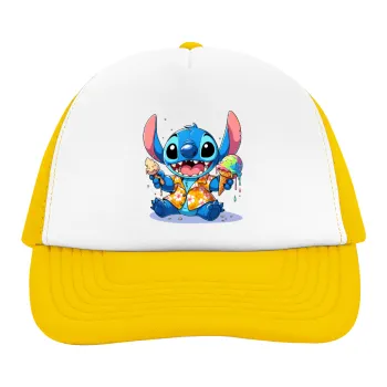Stitch Ice cream, Adult Soft Trucker Hat with Yellow/White Mesh (POLYESTER, ADULT, UNISEX, ONE SIZE)