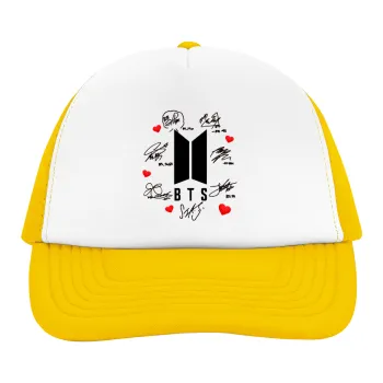 BTS signs, Adult Soft Trucker Hat with Yellow/White Mesh (POLYESTER, ADULT, UNISEX, ONE SIZE)