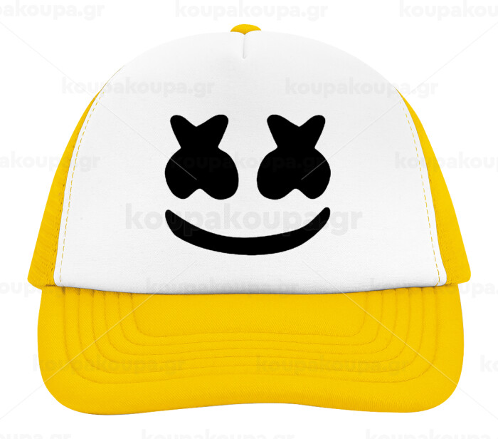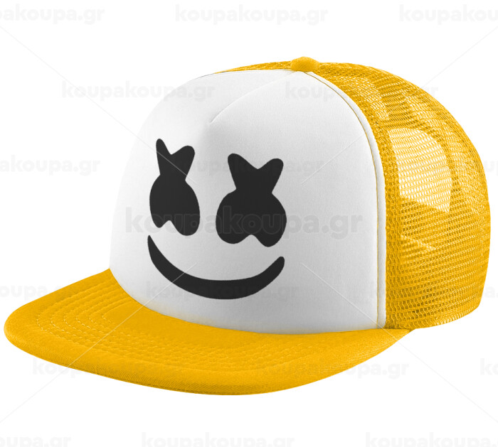 Marshmello, Adult Soft Trucker Hat with Yellow/White Mesh (POLYESTER, ADULT, UNISEX, ONE SIZE)