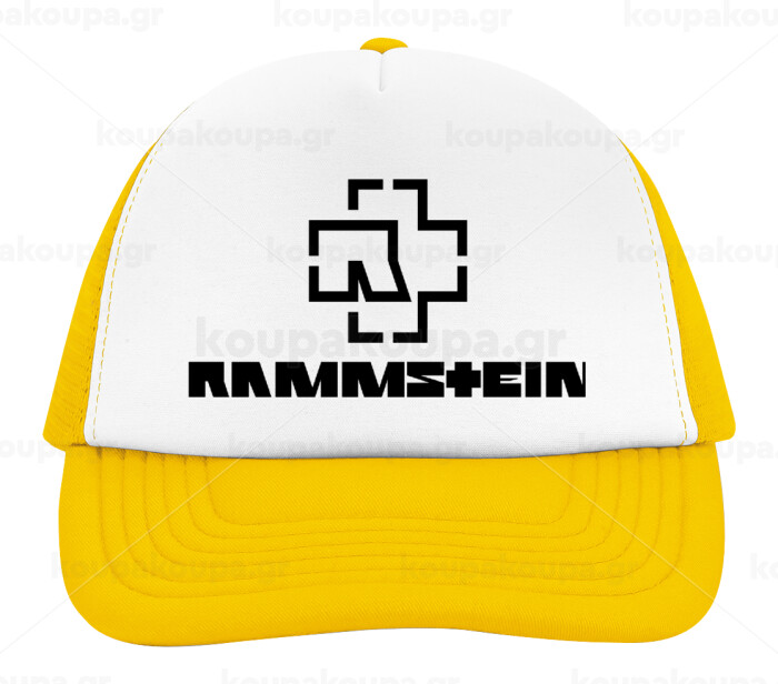 Rammstein, Adult Soft Trucker Hat with Yellow/White Mesh (POLYESTER, ADULT, UNISEX, ONE SIZE)
