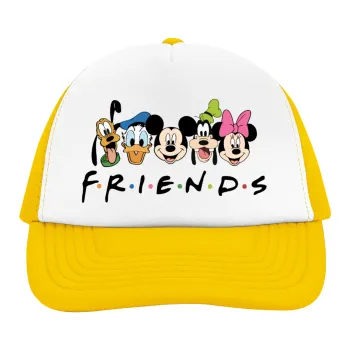 Friends characters, Adult Soft Trucker Hat with Yellow/White Mesh (POLYESTER, ADULT, UNISEX, ONE SIZE)