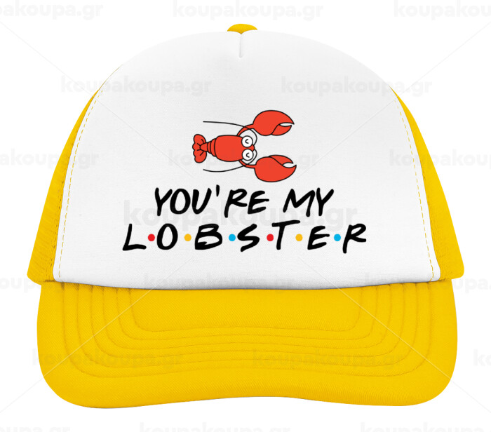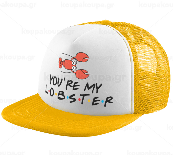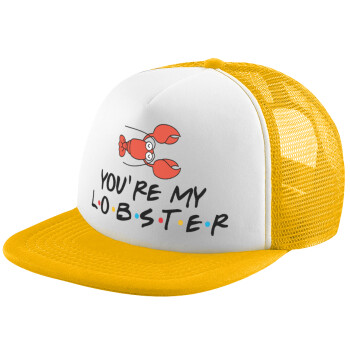 Friends you're my lobster, Adult Soft Trucker Hat with Yellow/White Mesh (POLYESTER, ADULT, UNISEX, ONE SIZE)