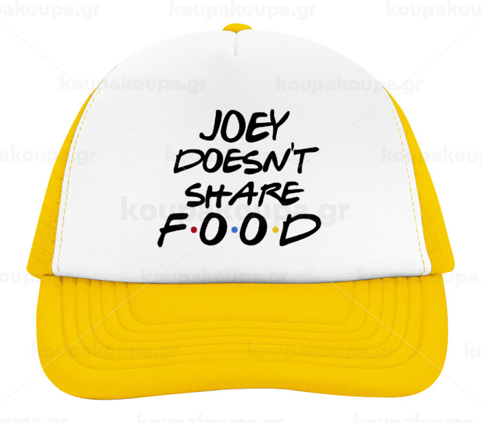 Joey Doesn't Share Food, Adult Soft Trucker Hat with Yellow/White Mesh (POLYESTER, ADULT, UNISEX, ONE SIZE)