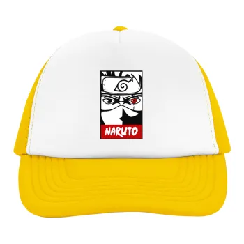 Naruto anime, Adult Soft Trucker Hat with Yellow/White Mesh (POLYESTER, ADULT, UNISEX, ONE SIZE)