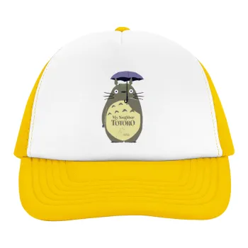 Totoro from My Neighbor Totoro, Adult Soft Trucker Hat with Yellow/White Mesh (POLYESTER, ADULT, UNISEX, ONE SIZE)