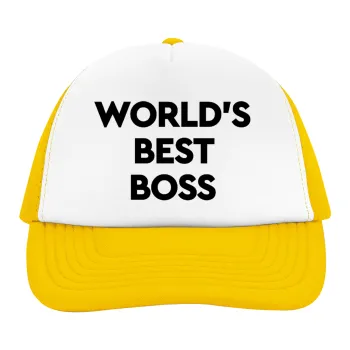 World's best boss, Adult Soft Trucker Hat with Yellow/White Mesh (POLYESTER, ADULT, UNISEX, ONE SIZE)