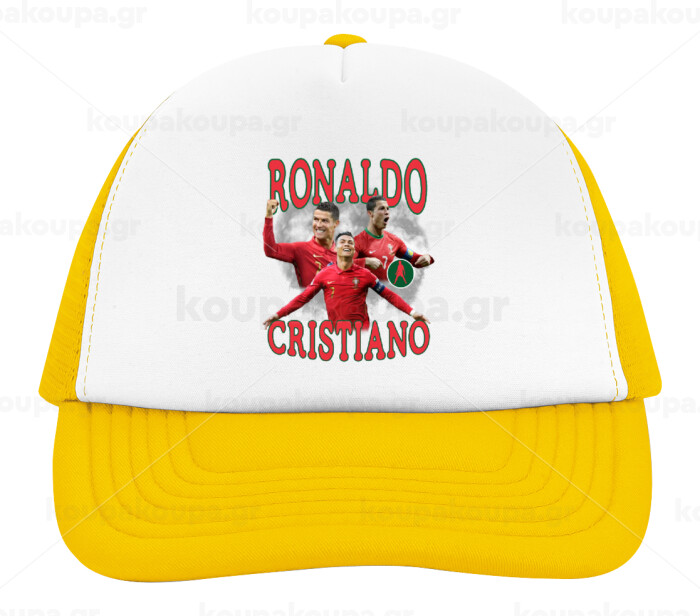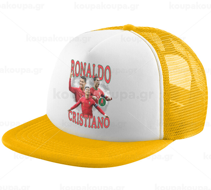 Cristiano Ronaldo, Adult Soft Trucker Hat with Yellow/White Mesh (POLYESTER, ADULT, UNISEX, ONE SIZE)