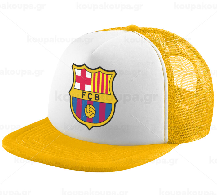 Barcelona FC, Adult Soft Trucker Hat with Yellow/White Mesh (POLYESTER, ADULT, UNISEX, ONE SIZE)