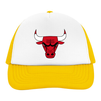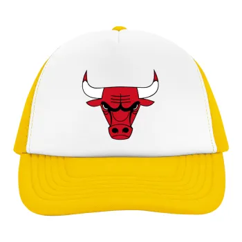 Chicago Bulls, Adult Soft Trucker Hat with Yellow/White Mesh (POLYESTER, ADULT, UNISEX, ONE SIZE)