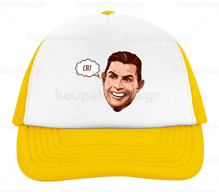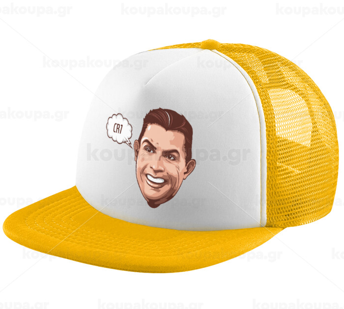 Cristiano Ronaldo, Adult Soft Trucker Hat with Yellow/White Mesh (POLYESTER, ADULT, UNISEX, ONE SIZE)