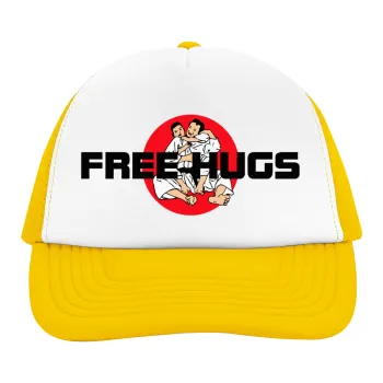 JUDO free hugs, Adult Soft Trucker Hat with Yellow/White Mesh (POLYESTER, ADULT, UNISEX, ONE SIZE)