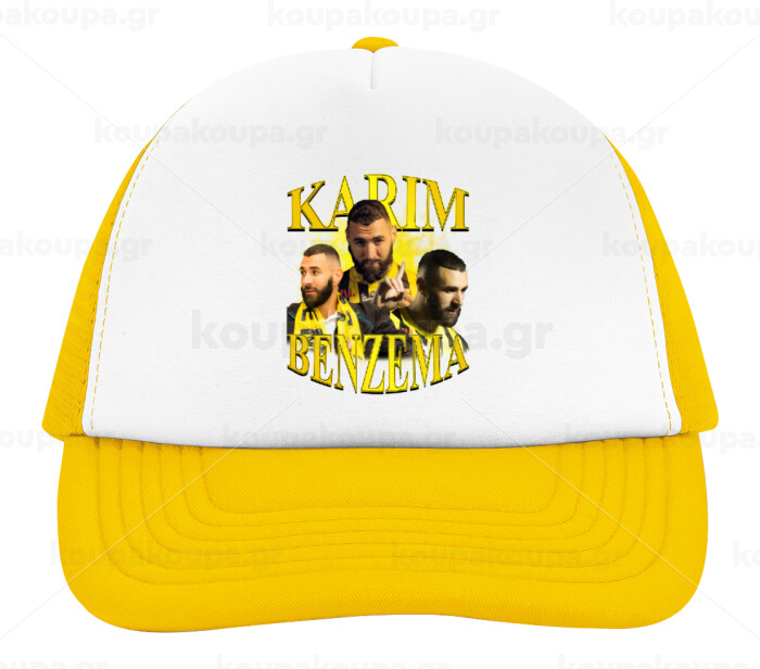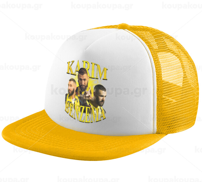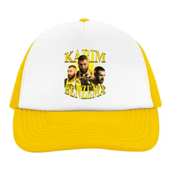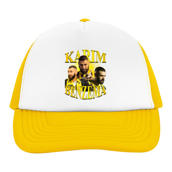 Karim Benzema, Adult Soft Trucker Hat with Yellow/White Mesh (POLYESTER, ADULT, UNISEX, ONE SIZE)
