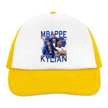 Kylian Mbappé, Adult Soft Trucker Hat with Yellow/White Mesh (POLYESTER, ADULT, UNISEX, ONE SIZE)