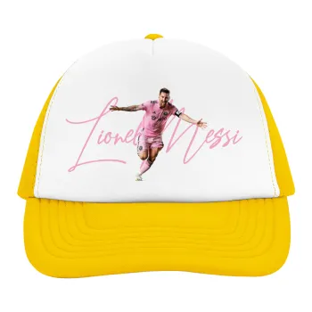 Lionel Messi inter miami jersey, Adult Soft Trucker Hat with Yellow/White Mesh (POLYESTER, ADULT, UNISEX, ONE SIZE)