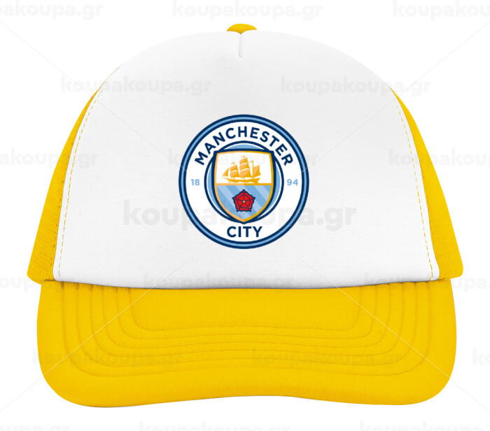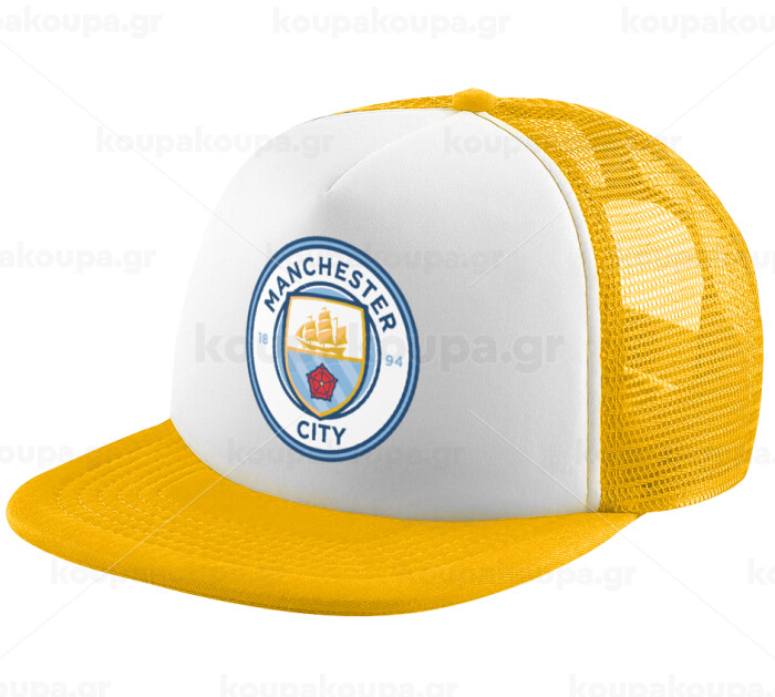 Manchester City FC , Adult Soft Trucker Hat with Yellow/White Mesh (POLYESTER, ADULT, UNISEX, ONE SIZE)