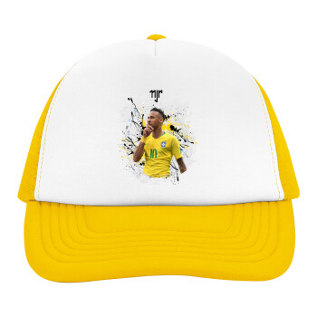 Neymar JR, Adult Soft Trucker Hat with Yellow/White Mesh (POLYESTER, ADULT, UNISEX, ONE SIZE)