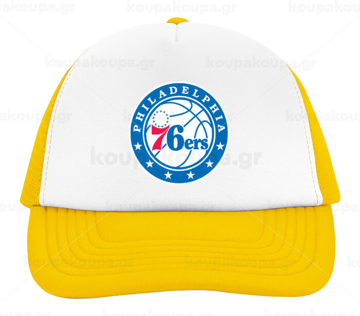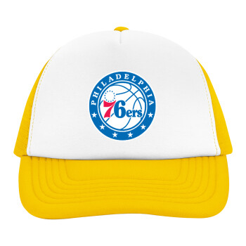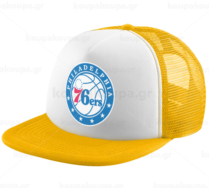 Philadelphia 76ers, Adult Soft Trucker Hat with Yellow/White Mesh (POLYESTER, ADULT, UNISEX, ONE SIZE)