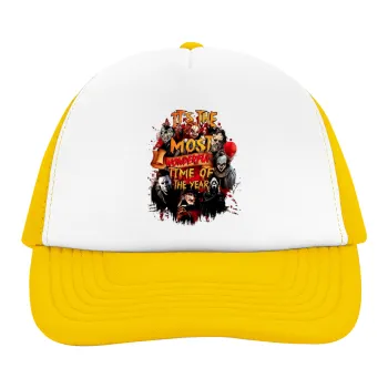 Halloween it's most wonderful time of the year, Adult Soft Trucker Hat with Yellow/White Mesh (POLYESTER, ADULT, UNISEX, ONE SIZE)