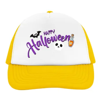 Happy Halloween (Χαλοουίν), Adult Soft Trucker Hat with Yellow/White Mesh (POLYESTER, ADULT, UNISEX, ONE SIZE)