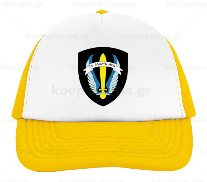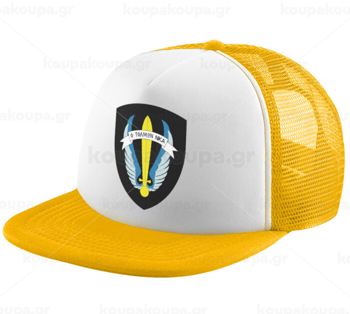Έμβλημα Μονάδων Καταδρομών Ο Τολμων Νικα - Λοκ, Adult Soft Trucker Hat with Yellow/White Mesh (POLYESTER, ADULT, UNISEX, ONE SIZE)