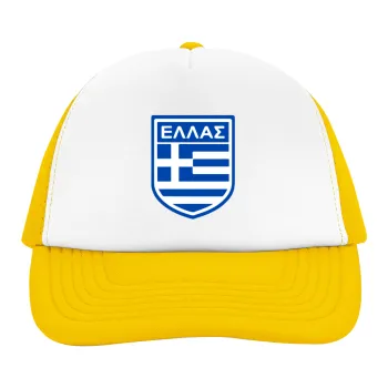 Hellas, Adult Soft Trucker Hat with Yellow/White Mesh (POLYESTER, ADULT, UNISEX, ONE SIZE)