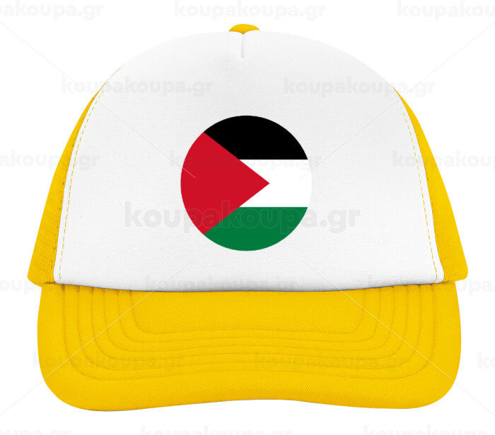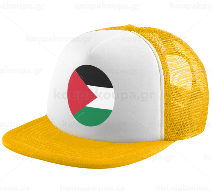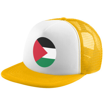 Palestine Flag, Adult Soft Trucker Hat with Yellow/White Mesh (POLYESTER, ADULT, UNISEX, ONE SIZE)