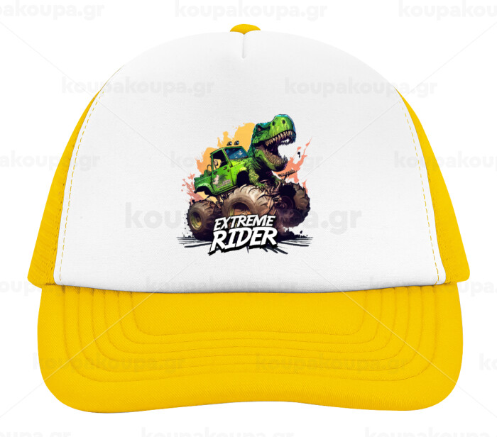 Extreme rider Dyno, Adult Soft Trucker Hat with Yellow/White Mesh (POLYESTER, ADULT, UNISEX, ONE SIZE)
