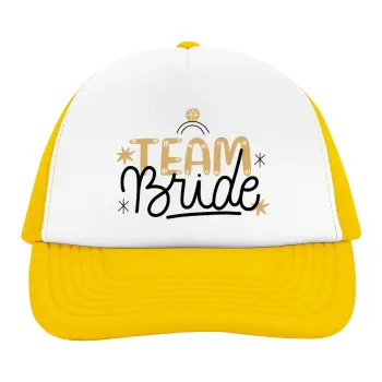 Team Bride Ruby, Adult Soft Trucker Hat with Yellow/White Mesh (POLYESTER, ADULT, UNISEX, ONE SIZE)